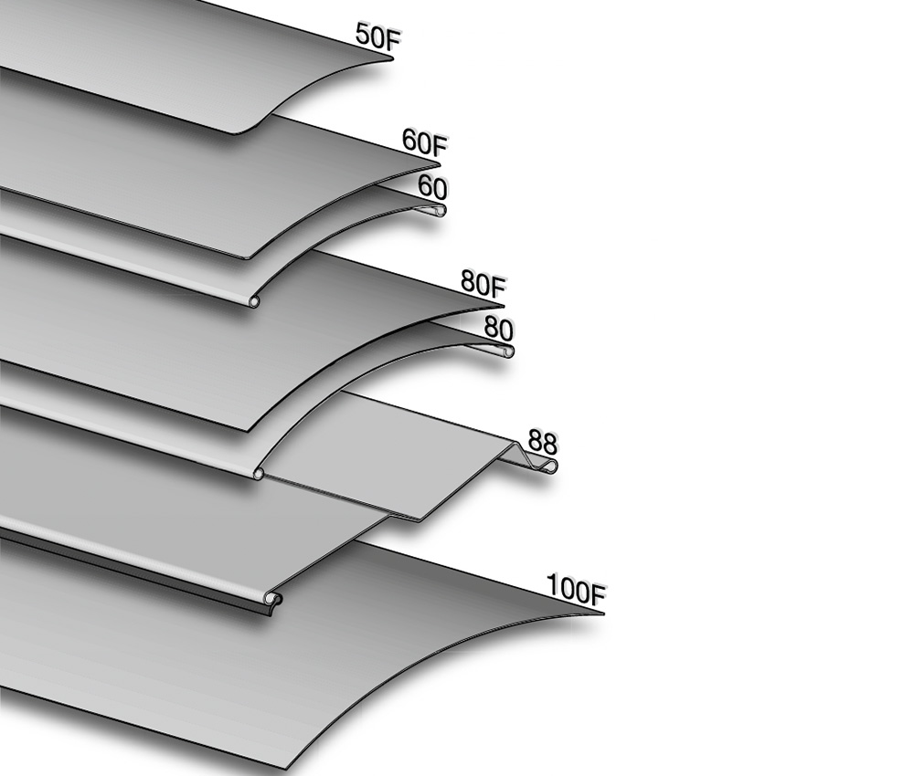 Voor de meer robuuste uitvoeringen zijn er diverse profielgeleidingen mogelijk: van smal tot breed in aanzichtvlak, van recht via rond tot profielen met geïntegreerd hijsmechanisme. In het laatste geval zijn geen ponsgaten in de lamellen nodig en sluiten de lamellen nog beter.