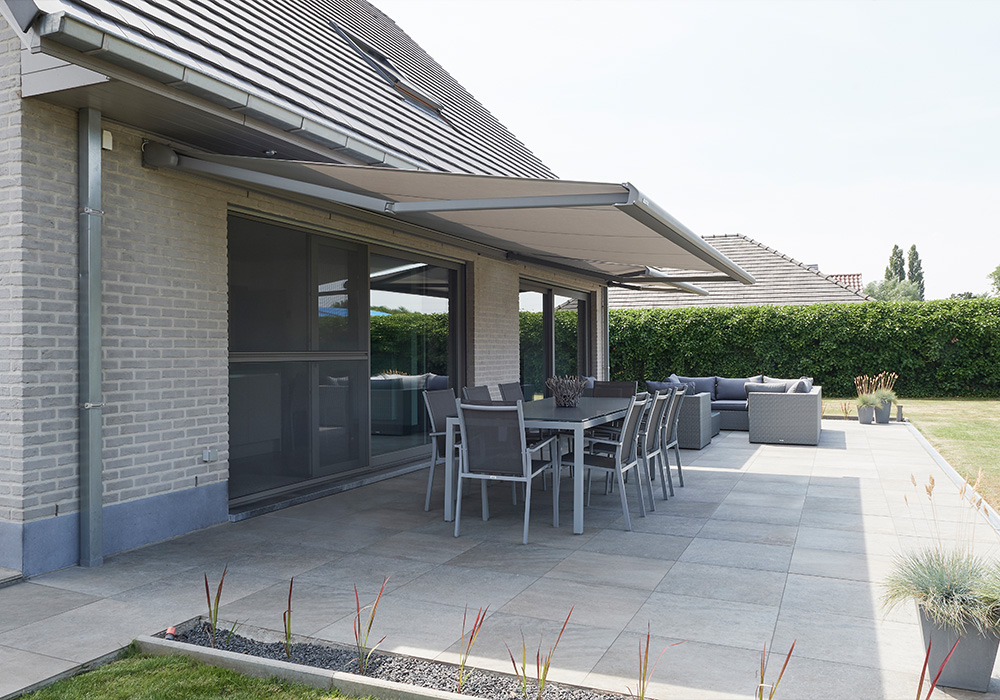 Het principe is erg eenvoudig: een zonnescherm is een scherm dat aan de gevel wordt gemonteerd en dat zorgt voor schaduw. We vinden het essentieel om binnen het assortiment knikarmschermen te blijven innoveren. Daarom zoeken we steeds naar nieuwe oplossingen voor nieuwbouw en renovatie.